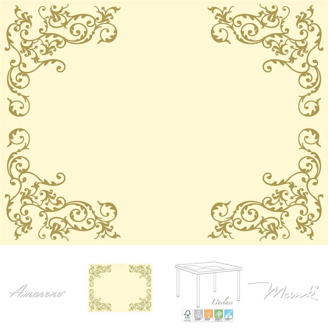 Elegantní krémové prostírání POMP se zlatými ornamenty dodá vašim stolům sofistikovaný a slavnostní vzhled. Jemná krémová barva v kombinaci s výraznými zlatými ornamenty vytváří harmonický kontrast, který působí luxusně a příjemně zároveň. Prostírání je vyrobeno z netkané textilie, což je praktický a odolný materiál. Ideální pro hotely, restaurace i domácí sváteční výzdobu. Toto elegantní prostírání přemění každý stůl na stylové a reprezentativní místo, které potěší vaše hosty.