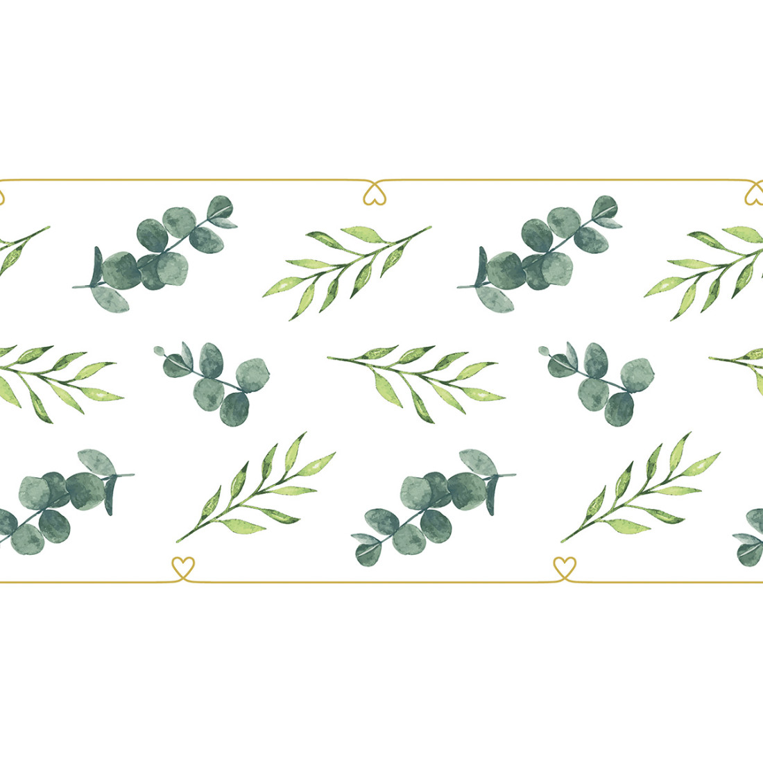 Flexibilný dizajn šerpy stôl Eukalyptus dokonale zladíte s kolekciou servítok Eukalyptus. Vytvoríte tak jednoduché a štýlové prestieranie na svadbu, 1.sväté prijímanie, konfirmáciu. Behúň na stôl je vyrobený z netkanej textílie, je sametovo hebký na dotyk aj pohľad. BIOdegradovateľný materiál, vyrobený spôsobom šetrným k prírode. Veľkoobchod/maloobchod