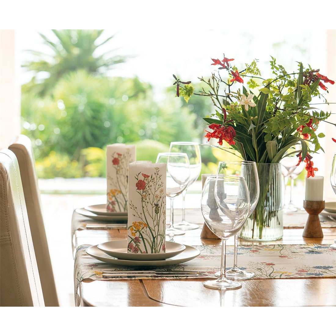 Vytvořte si slavnostní výzdobu stolu svých snů s našimi pestrobarevnými květovanými ubrousky Edith. Kombinujte je s běhounem ve stejném designu nebo s jednobarevnými běhouny v odstínech tmavě modré, červené, olivové, žluté či pastelové růžové. Výsledkem bude dokonale elegantní a sladěné prostírání, ideální pro svatby, oslavy nebo jiné výjimečné příležitosti. Vaši hosté budou nadšeni – wow efekt zaručen.