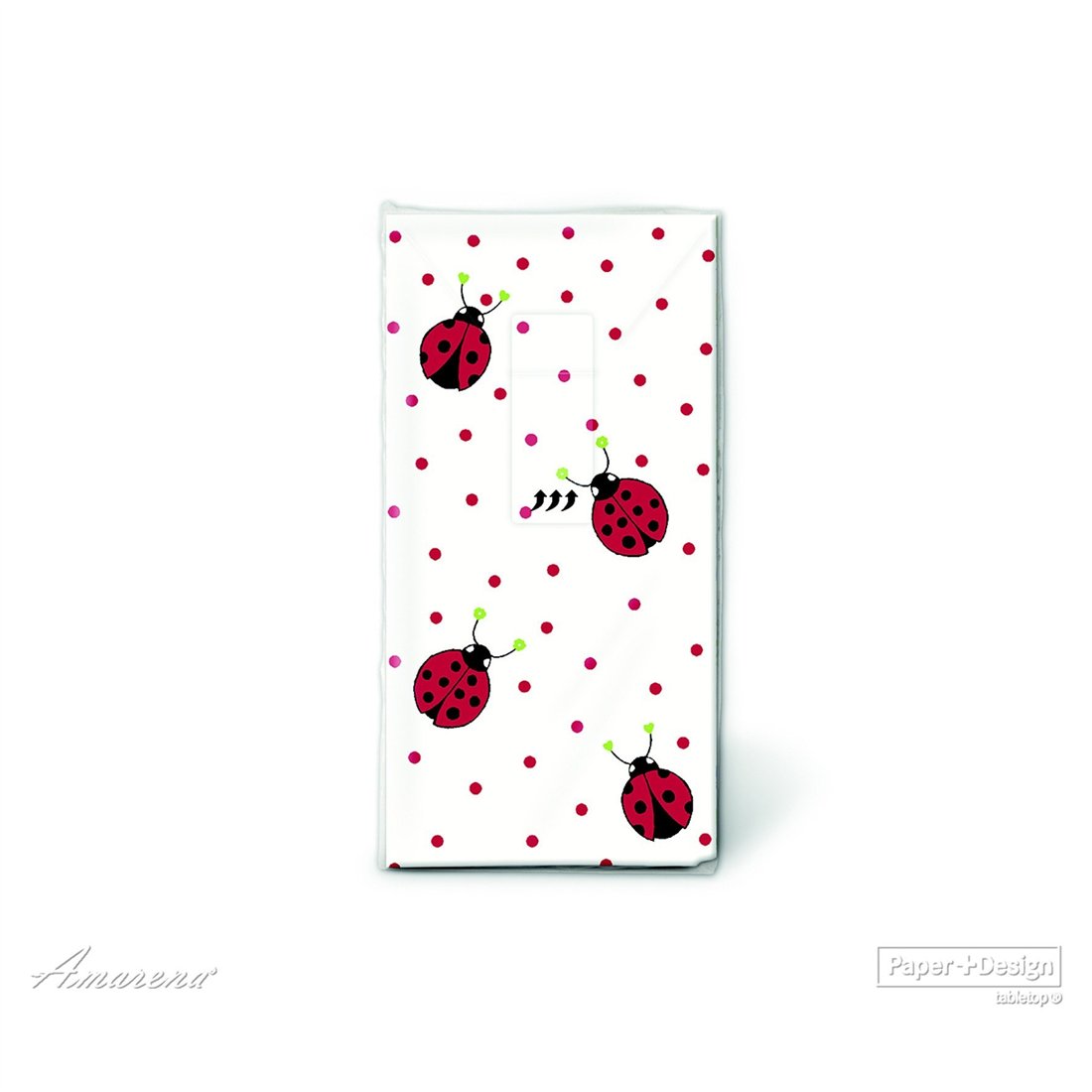 Design, papírové kapesníky, 10 dílů kapesníků v jednom balení. Tisknuté, poseté beruškami. Znovu uzavíratelné obaly. Bez chloru, hypoalergenní a šetrné k životnímu prostředí.