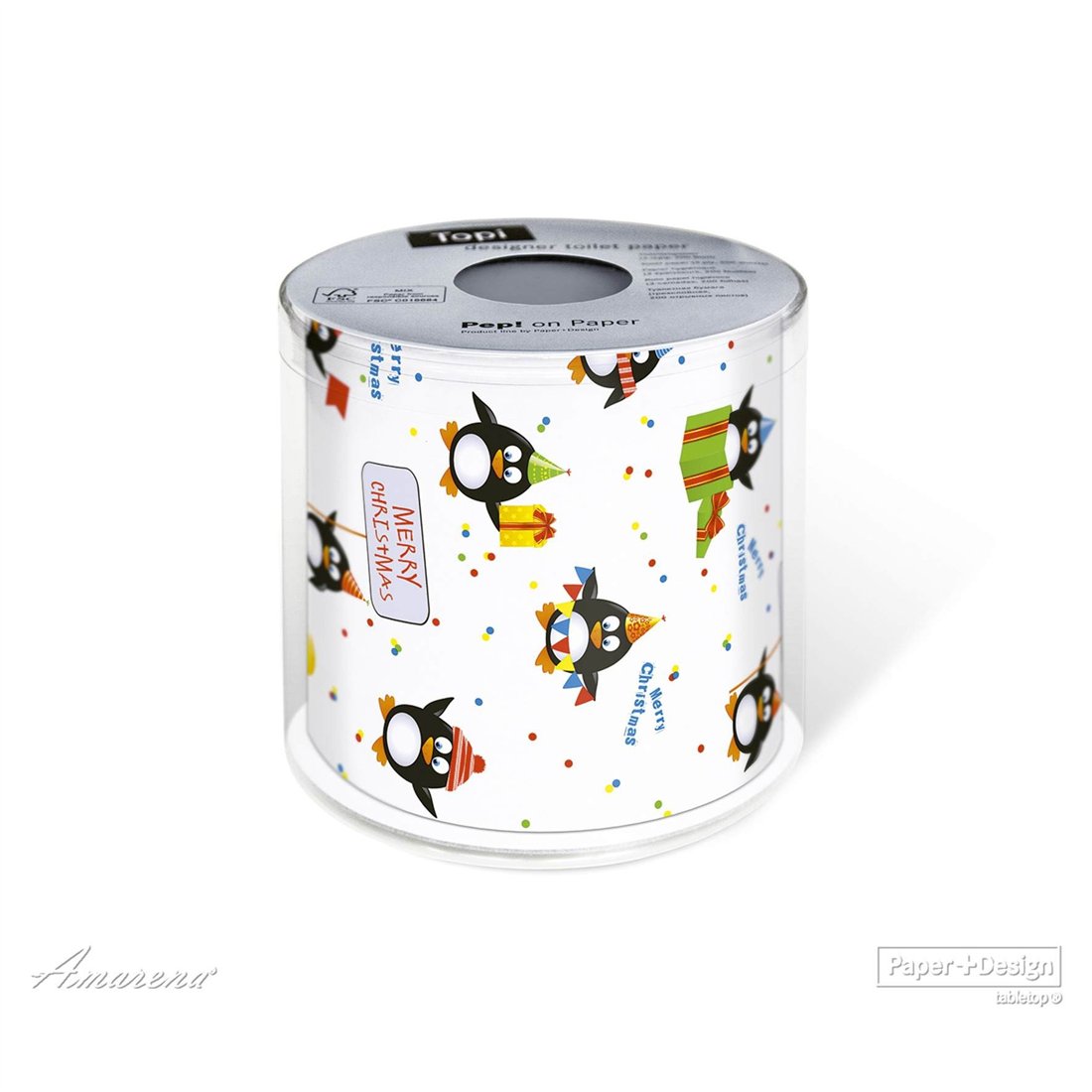 Vánoční toaletní papír, třívrstvý s potiskem tučňáků. Vhodné jako dárek, vánoční dekorace.