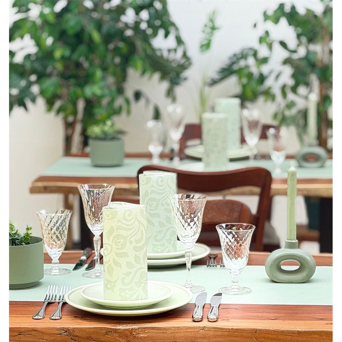 Mimořádně všestranné a univerzální jsou nové ubrousky Rex v krásné pastelové šalvějově zelené barvě s jemným vzorem. Využijete je na jakoukoli příležitost. Ideální ubrousky na svatbu, křtiny, oslavy, nebo jako slavnostní prostírání do restaurace. Během krátké chvilky vytvoříte nezapomenutelné prostírání pro své vzácné hosty. Vyrobeny jsou z netkané textilie, což je vynikající materiál napodobující látku. Extra pevný a zároveň příjemný na pohled i dotek.