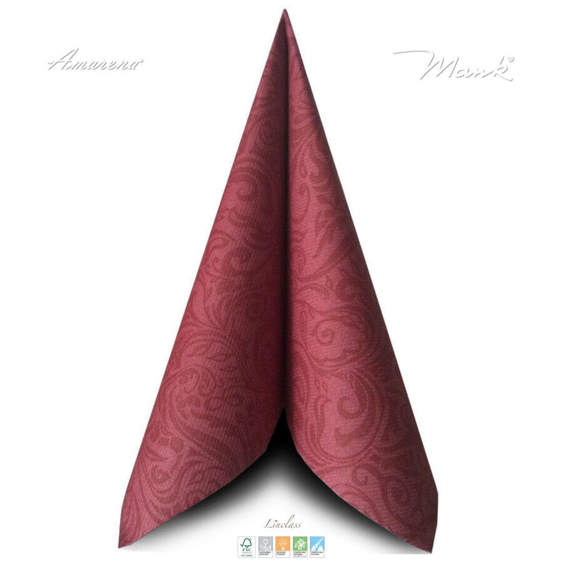 Luxusní svatební ubrousky z netkané textilie v bordové barvě s jemným vzorem. Extra pevné, savé a příjemné na omak, jsou ideální nejen na svatby, ale i na oslavy, či jiné slavnostní příležitosti. Jemný vzor dodává ubrouskům elegantní a nadčasový vzhled, který skvěle doplní jakoukoliv dekoraci stolů.
