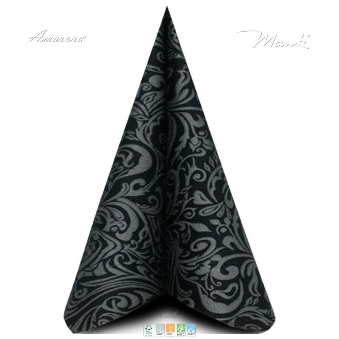 Slavnostní ubrousky z netkané textilie Lias, 40 × 40 cm, v černo-stříbrné barvě s jemným vzorem, vhodné pro smuteční události i pro extravagantní svatby a oslavy. Extra pevné, savé a příjemné na omak, dodají každé tabuli sofistikovaný a stylový vzhled. Jemný vzor podtrhuje eleganci a nadčasový charakter, který skvěle doplní jak tradiční, tak i moderní dekorace stolů.